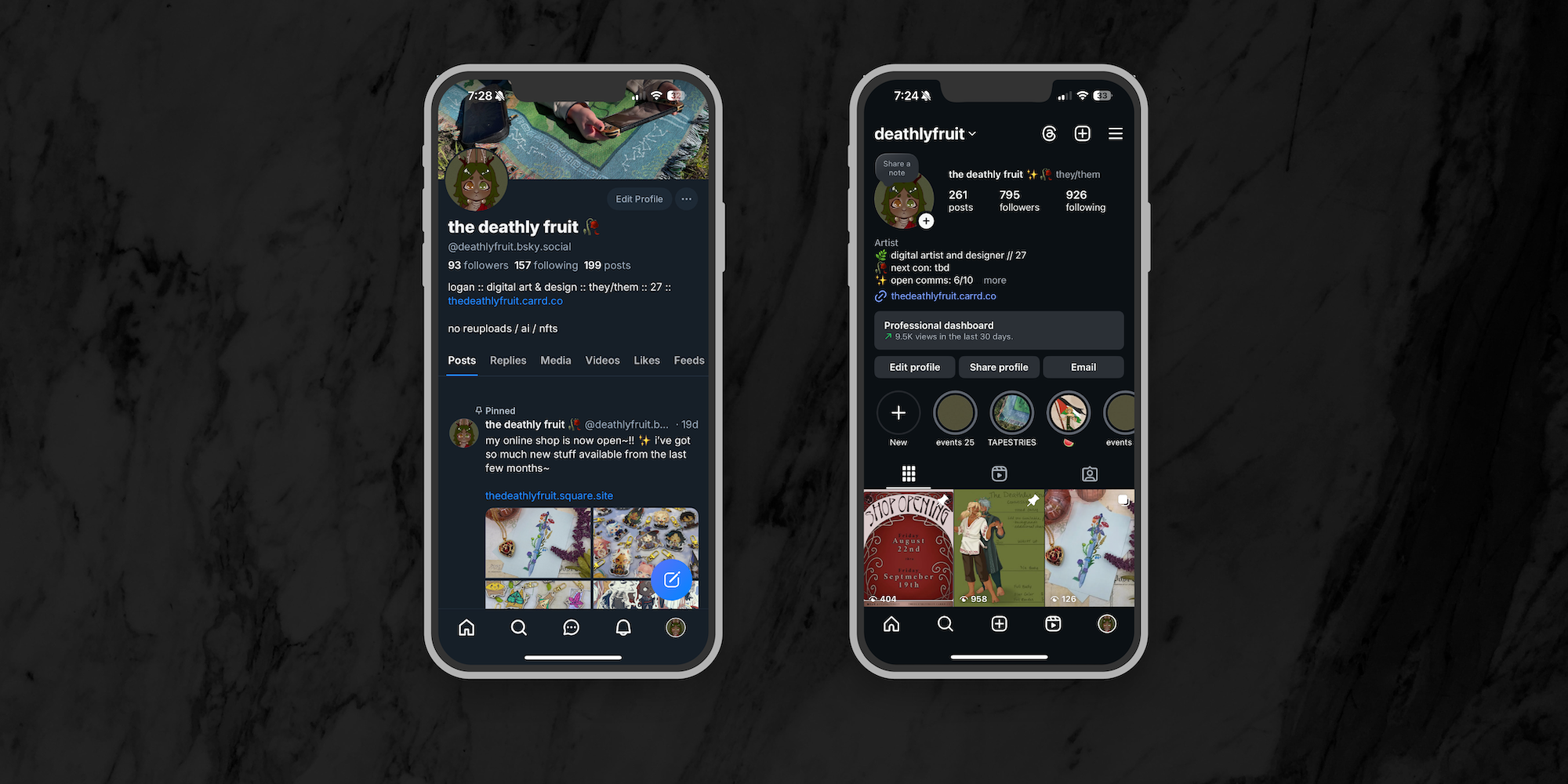 The Deathly Fruit is a Texas-based freelancer and artist who sells their artwork both online and a pop up markets and conventions acorss Texas. The brand is heavily inspired by the Greek myths of the underworld as well as the Biblical story of Eve and the Serpent.